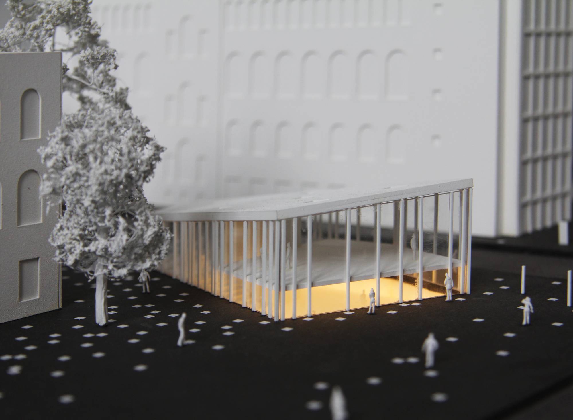 The students developed their concepts in the form of models. This resulted in depending on the concept, models of the entire processing area or detailed models. The three-dimensional results of this seminar make a contribution to the concept development.