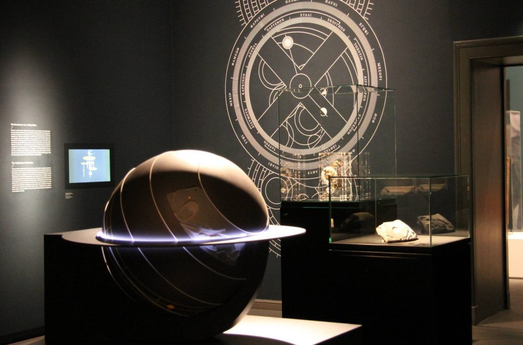Celestial globe – model illustrating the functioning of a celestial globe. Incorporation of the cast of a Roman fragment.